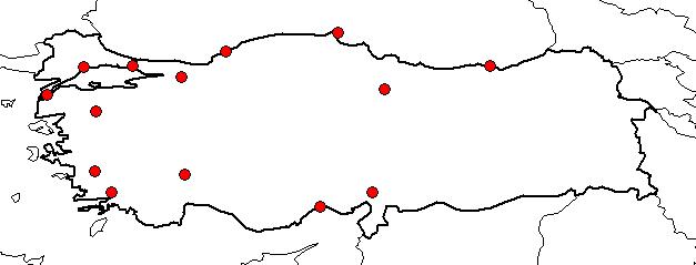 | Based on Vilayets: | OSMANİYE, İSTANBUL, ZONGULDAK, AYDIN, BALIKESİR, ÇANAKKALE, ISPARTA, İÇEL, MUĞLA, SAKARYA, SİNOP, TEKİRDAĞ, TOKAT, TRABZON|