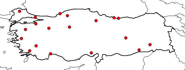 | Based on Vilayets: | ADANA, İSTANBUL, MARDİN, SİİRT, ZONGULDAK, KARABÜK, AMASYA, ANKARA, ANTALYA, BALIKESİR, BURSA, DENİZLİ, ELAZIĞ, ESKİŞEHİR, GİRESUN, KIRKLARELİ, MANİSA, MUĞLA, ORDU|