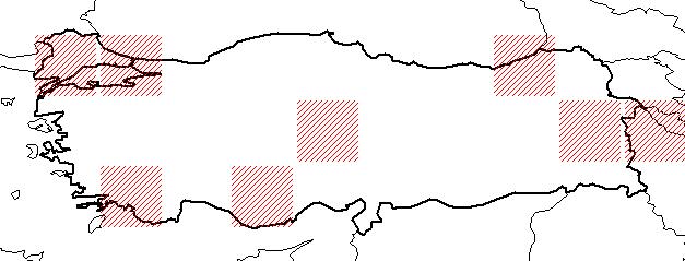 Türkiye dağılımı : K. Türkiye, KD., GB. ve Karasal Anadolu