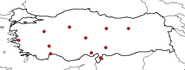 | Based on Vilayets: | ADANA, ANKARA, ANTALYA, ERZİNCAN, HATAY, ISPARTA, İZMİR, KÜTAHYA, KAHRAMANMARAŞ, NEVŞEHİR, SİVAS|