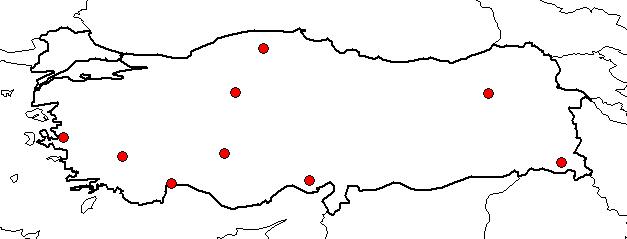 Türkiye dağılımı : Aralıklı Olarak Bir uçtan Öbür Uca Anadolu
