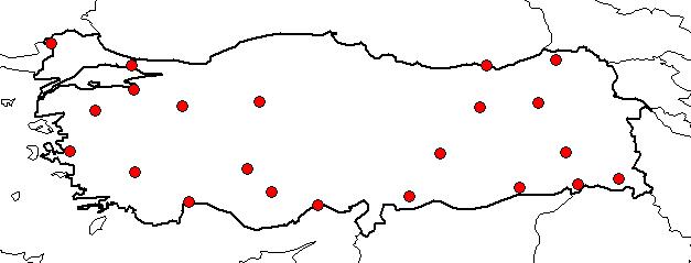 | Based on Vilayets: | GAZİANTEP, İSTANBUL, HAKKARİ, MARDİN, ŞIRNAK, BİTLİS, ANKARA, ANTALYA, ARTVİN, BALIKESİR, BURSA, DENİZLİ, EDİRNE, ERZİNCAN, ERZURUM, ESKİŞEHİR, İÇEL, İZMİR, KONYA, MALATYA, TRABZON, KARAMAN|