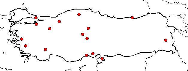 Türkiye dağılımı : K. Türkiye, B., G., D. ve O. Anadolu