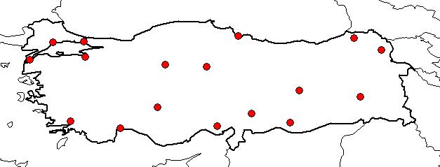 | Based on Vilayets: | ADANA, İSTANBUL, KARS, BİTLİS, AĞRI, ANKARA, ANTALYA, ARTVİN, BURSA, ÇANAKKALE, ELAZIĞ, KONYA, KAHRAMANMARAŞ, MUĞLA, SAMSUN, TEKİRDAĞ, ŞANLIURFA, YOZGAT|