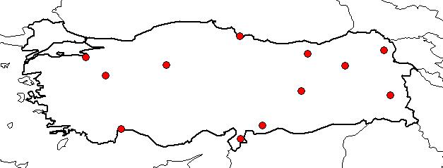 | Based on Vilayets: | GAZİANTEP, KARS, ANKARA, ANTALYA, BURSA, ELAZIĞ, ERZURUM, GÜMÜŞHANE, HATAY, KÜTAHYA, SAMSUN, VAN|