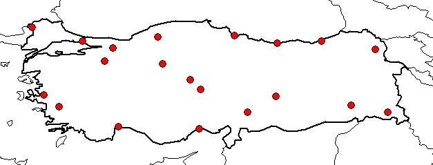 | Based on Vilayets: | İSTANBUL, KARS, HAKKARİ, SİİRT, KARABÜK, AĞRI, ANKARA, ANTALYA, AYDIN, BİLECİK, EDİRNE, GİRESUN, İÇEL, İZMİR, KIRŞEHİR, MALATYA, KAHRAMANMARAŞ, NEVŞEHİR, RİZE, SAKARYA, SAMSUN|