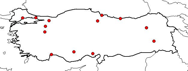 | Based on Vilayets: | ADANA, İSTANBUL, BİTLİS, AMASYA, ANTALYA, BİLECİK, ERZURUM, GİRESUN, KÜTAHYA, SAKARYA, SAMSUN, TEKİRDAĞ, KARAMAN| Taksonun kare düzeyinde dağılımı bulunamadı.