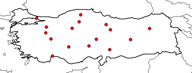 | Based on Vilayets: | İSTANBUL, ÇANKIRI, KASTAMONU, AFYONKARAHİSAR, ANKARA, ANTALYA, BİLECİK, ELAZIĞ, ERZURUM, KAYSERİ, KONYA, KÜTAHYA, KAHRAMANMARAŞ, NİĞDE, SİVAS, TOKAT|