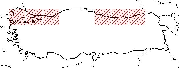 Türkiye dağılımı : KB. Türkiye ve KD. Anadolu