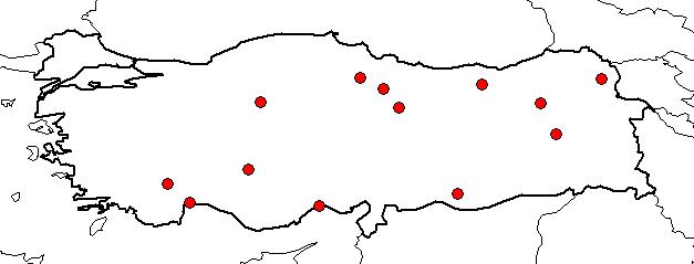 | Based on Vilayets: | KARS, AMASYA, ANKARA, ANTALYA, BURDUR, ERZURUM, GÜMÜŞHANE, İÇEL, KONYA, MUŞ, SİVAS, TOKAT, ŞANLIURFA|