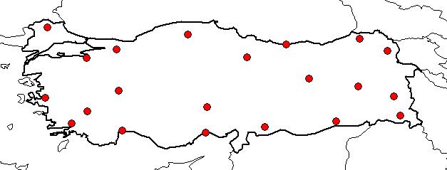 | Based on Vilayets: | GAZİANTEP, KARS, HAKKARİ, MARDİN, KASTAMONU, AFYONKARAHİSAR, ANTALYA, ARTVİN, BURSA, DENİZLİ, GİRESUN, İÇEL, İZMİR, KIRKLARELİ, MUĞLA, MUŞ, NİĞDE, SAKARYA, TOKAT, TUNCELİ, VAN|