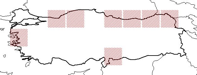 Türkiye dağılımı : K., B. ve G. Anadolu
