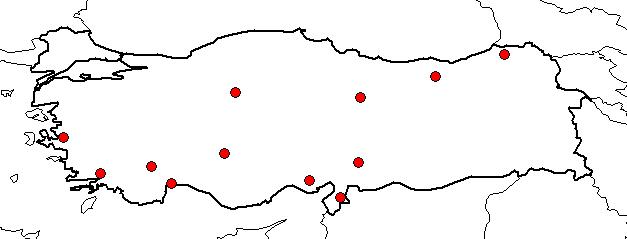 | Based on Vilayets: | ADANA, ANKARA, ANTALYA, ARTVİN, BURDUR, GÜMÜŞHANE, HATAY, İZMİR, KONYA, KAHRAMANMARAŞ, MUĞLA, SİVAS|