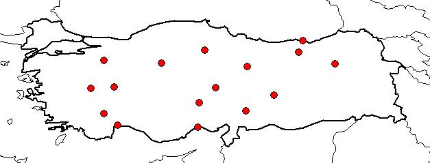 | Based on Vilayets: | AFYONKARAHİSAR, AĞRI, ANKARA, ANTALYA, BİLECİK, BURDUR, ÇORUM, ERZURUM, GÜMÜŞHANE, İÇEL, KAYSERİ, MALATYA, KAHRAMANMARAŞ, NİĞDE, SİVAS, TRABZON, UŞAK|