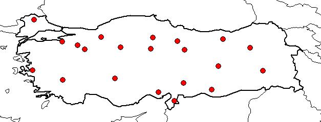 | Based on Vilayets: | ADANA, BOLU, BİTLİS, ANKARA, BİLECİK, BURSA, ÇORUM, DENİZLİ, ELAZIĞ, ERZURUM, ESKİŞEHİR, GÜMÜŞHANE, HATAY, İZMİR, KIRKLARELİ, KONYA, KAHRAMANMARAŞ, SİVAS, TOKAT, ŞANLIURFA, YOZGAT|