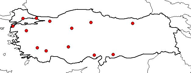 | Based on Vilayets: | ADANA, GAZİANTEP, İSTANBUL, ANKARA, BALIKESİR, BURDUR, ÇANAKKALE, ÇORUM, DENİZLİ, GÜMÜŞHANE, KONYA, SAKARYA, TEKİRDAĞ|