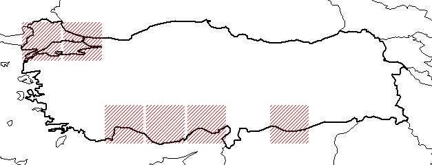 Türkiye dağılımı : KB., G. ve D. Anadolu