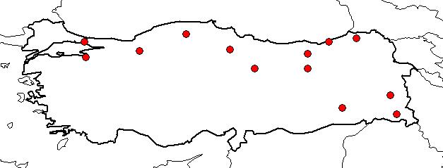 Türkiye dağılımı : K. Türkiye, D ve GD. Anadolu