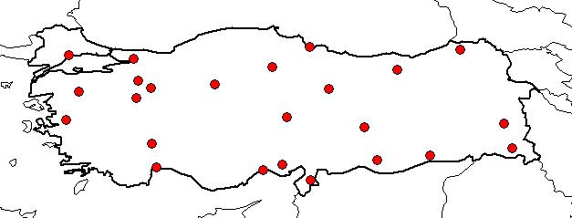| Based on Vilayets: | ADANA, HAKKARİ, MARDİN, ANKARA, ANTALYA, ARTVİN, BALIKESİR, BİLECİK, ÇORUM, ESKİŞEHİR, GÜMÜŞHANE, HATAY, ISPARTA, İÇEL, KAYSERİ, KOCAELİ, KÜTAHYA, MALATYA, MANİSA, SAMSUN, SİVAS, TEKİRDAĞ, ŞANLIURFA, VAN|
