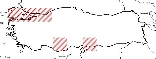 Türkiye dağılımı : KB. Türkiye, KD. ve G. Anadolu