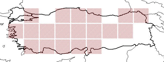 Türkiye dağılımı : K. Tirkiye, KD., B., G. ve Karasal Anadolu