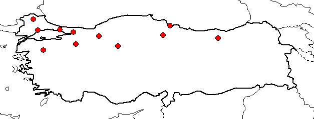 Türkiye dağılımı : KB. Türkiye, O. ve KD. Anadolu