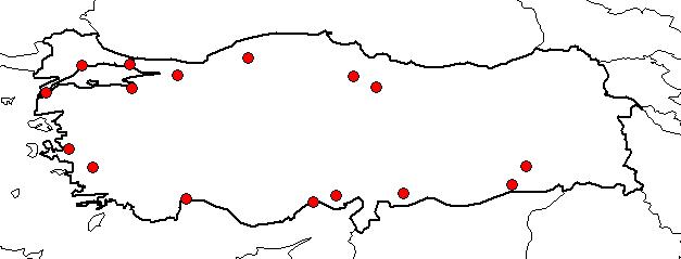 Türkiye dağılımı : Trakya, Dış ve GD. Anadolu