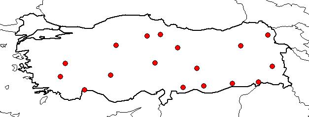 | Based on Vilayets: | GAZİANTEP, KARS, MARDİN, ŞIRNAK, AMASYA, ANKARA, ANTALYA, ÇORUM, DENİZLİ, ERZURUM, KAYSERİ, KONYA, MALATYA, SİVAS, ŞANLIURFA, UŞAK, VAN|