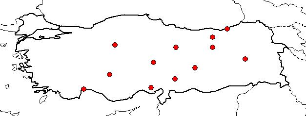| Based on Vilayets: | ADANA, ANKARA, ANTALYA, ERZİNCAN, GÜMÜŞHANE, KAYSERİ, KONYA, MALATYA, KAHRAMANMARAŞ, MUŞ, RİZE, SİVAS|