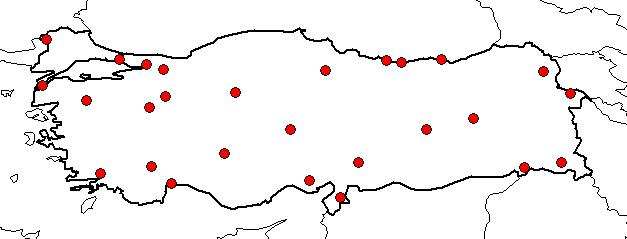 | Based on Vilayets: | ADANA, İSTANBUL, IĞDIR, KARS, HAKKARİ, ŞIRNAK, AĞRI, AMASYA, ANKARA, ANTALYA, BALIKESİR, BİNGÖL, BURDUR, ÇANAKKALE, EDİRNE, ELAZIĞ, ESKİŞEHİR, GİRESUN, HATAY, KOCAELİ, KONYA, KÜTAHYA, KAHRAMANMARAŞ, MUĞLA, NEVŞEHİR, ORDU, SAKARYA, TRABZON|