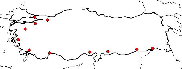 Türkiye dağılımı : KB. Türkiye, B. ve G. Anadolu