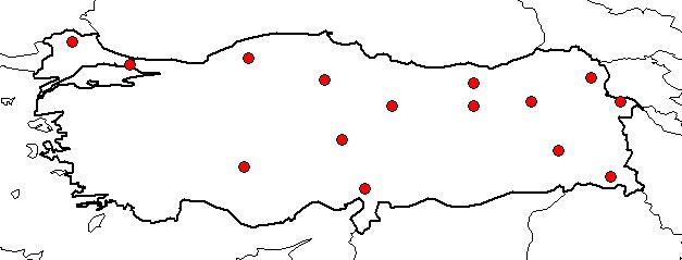 Türkiye dağılımı : Trakya, K. Anadolu, Karasal Anadolu