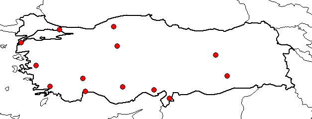 | Based on Vilayets: | ADANA, İSTANBUL, KARABÜK, ANKARA, ANTALYA, ÇANAKKALE, DİYARBAKIR, HATAY, ISPARTA, MANİSA, MUĞLA, TUNCELİ, KARAMAN|