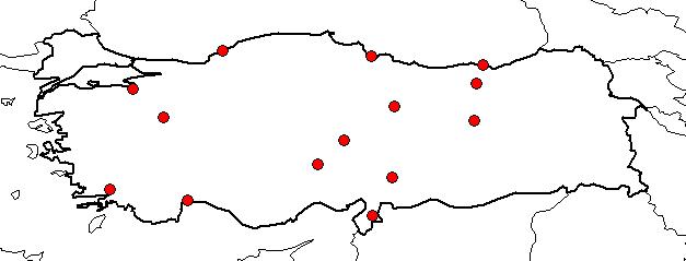 | Based on Vilayets: | ZONGULDAK, ANTALYA, BURSA, GÜMÜŞHANE, HATAY, KAYSERİ, KÜTAHYA, KAHRAMANMARAŞ, MUĞLA, NİĞDE, SAMSUN, SİVAS, TRABZON, TUNCELİ|