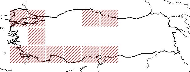 Türkiye dağılımı : KB. Türkiye, B., GB., G. ve O. Anadolu