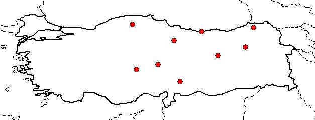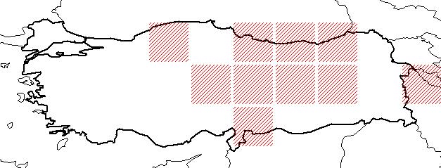 Türkiye dağılımı : 33 Derece D.´nun Doğusu dağınık, K., KD., OD., GD. ve D. Anadolu