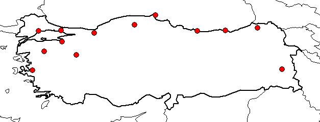 | Based on Vilayets: | DÜZCE, İSTANBUL, KASTAMONU, ARTVİN, BALIKESİR, BURSA, İZMİR, KÜTAHYA, ORDU, SİNOP, TEKİRDAĞ, TRABZON, VAN| Taksonun kare düzeyinde dağılımı bulunamadı.