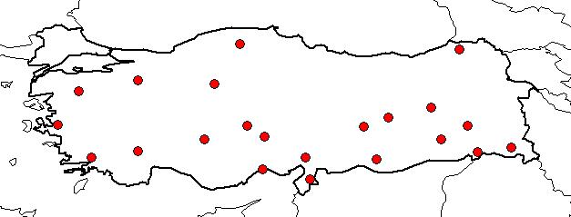 | Based on Vilayets: | OSMANİYE, HAKKARİ, BATMAN, ŞIRNAK, KASTAMONU, BİTLİS, ANKARA, ARTVİN, BALIKESİR, BİLECİK, BİNGÖL, BURDUR, ELAZIĞ, HATAY, İÇEL, İZMİR, KONYA, MALATYA, MUĞLA, NİĞDE, ŞANLIURFA, AKSARAY|