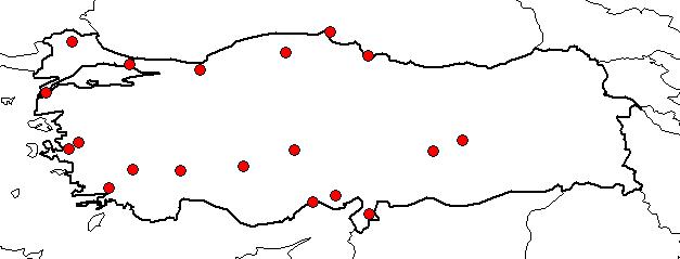 | Based on Vilayets: | ADANA, DÜZCE, İSTANBUL, KASTAMONU, ÇANAKKALE, DENİZLİ, ELAZIĞ, HATAY, ISPARTA, İÇEL, İZMİR, KIRKLARELİ, KONYA, MALATYA, MANİSA, MUĞLA, SAMSUN, SİNOP, AKSARAY|