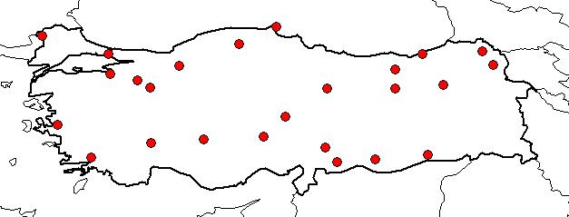 | Based on Vilayets: | BOLU, GAZİANTEP, İSTANBUL, KARS, ARDAHAN, MARDİN, KASTAMONU, AĞRI, BİLECİK, BURSA, EDİRNE, ERZİNCAN, ERZURUM, ESKİŞEHİR, GÜMÜŞHANE, ISPARTA, İZMİR, KAYSERİ, KONYA, KAHRAMANMARAŞ, MUĞLA, NİĞDE, RİZE, SİNOP, SİVAS, ŞANLIURFA|