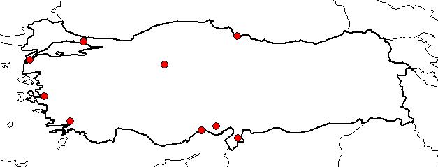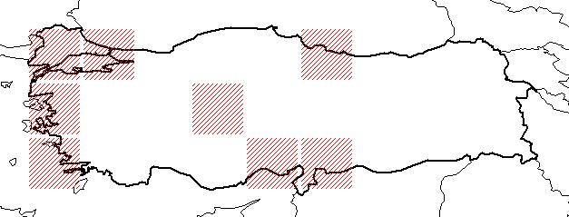 Türkiye dağılımı : 38 Derece D.´nun Batısı, Trakya, KB., B., OB. ve G. Anadolu