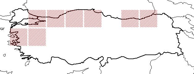 Türkiye dağılımı : KB., ve komşusu O. Anadolu
