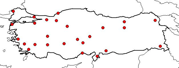 | Based on Vilayets: | BOLU, GAZİANTEP, İSTANBUL, KARS, HAKKARİ, ZONGULDAK, AFYONKARAHİSAR, AĞRI, ANKARA, AYDIN, BURSA, ÇANAKKALE, DENİZLİ, EDİRNE, ERZİNCAN, GÜMÜŞHANE, HATAY, ISPARTA, İÇEL, İZMİR, KAYSERİ, KONYA, MUĞLA, NİĞDE, SAKARYA, SİVAS, AKSARAY|