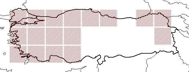 Türkiye dağılımı : Trakya, K., KD. ve GB. Anadolu