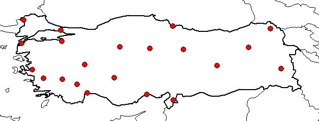 | Based on Vilayets: | İSTANBUL, ARDAHAN, AFYONKARAHİSAR, AĞRI, ANKARA, ANTALYA, AYDIN, BURDUR, BURSA, ÇANAKKALE, DENİZLİ, EDİRNE, ELAZIĞ, ERZURUM, HATAY, İÇEL, İZMİR, KONYA, SAMSUN, SİVAS, VAN, YOZGAT|