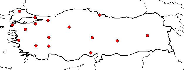 | Based on Vilayets: | ADANA, İSTANBUL, AFYONKARAHİSAR, AĞRI, ANKARA, BALIKESİR, BURSA, ÇANAKKALE, DENİZLİ, ISPARTA, İZMİR, KAYSERİ, KIRKLARELİ, MALATYA, MUŞ, SAKARYA, SAMSUN|