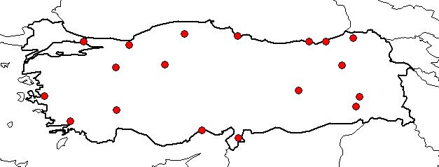 | Based on Vilayets: | DÜZCE, İSTANBUL, SİİRT, KASTAMONU, BİTLİS, ANKARA, ARTVİN, ELAZIĞ, ERZURUM, ESKİŞEHİR, HATAY, ISPARTA, İÇEL, İZMİR, MUĞLA, RİZE, SAMSUN, TRABZON|
