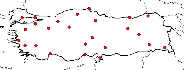 | Based on Vilayets: | BOLU, İSTANBUL, HAKKARİ, SİİRT, KASTAMONU, AMASYA, ANKARA, ANTALYA, ARTVİN, AYDIN, BALIKESİR, BİNGÖL, BURSA, DENİZLİ, ERZİNCAN, ESKİŞEHİR, HATAY, İÇEL, İZMİR, KAYSERİ, KAHRAMANMARAŞ, NİĞDE, SİNOP, TEKİRDAĞ, TRABZON|