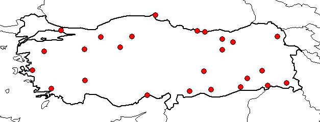 | Based on Vilayets: | BOLU, GAZİANTEP, İSTANBUL, KARS, HAKKARİ, MARDİN, BATMAN, ŞIRNAK, ÇANKIRI, BİTLİS, ANKARA, BALIKESİR, ERZİNCAN, ESKİŞEHİR, GİRESUN, GÜMÜŞHANE, ISPARTA, İÇEL, İZMİR, MALATYA, MUĞLA, ORDU, SİNOP, ŞANLIURFA, BAYBURT|