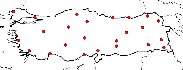 | Based on Vilayets: | OSMANİYE, İSTANBUL, KARS, HAKKARİ, SİİRT, KASTAMONU, ADIYAMAN, ANKARA, ANTALYA, ARTVİN, ÇORUM, EDİRNE, ERZURUM, İÇEL, İZMİR, KONYA, KÜTAHYA, MALATYA, MUĞLA, NEVŞEHİR, ORDU, TRABZON, TUNCELİ, VAN|